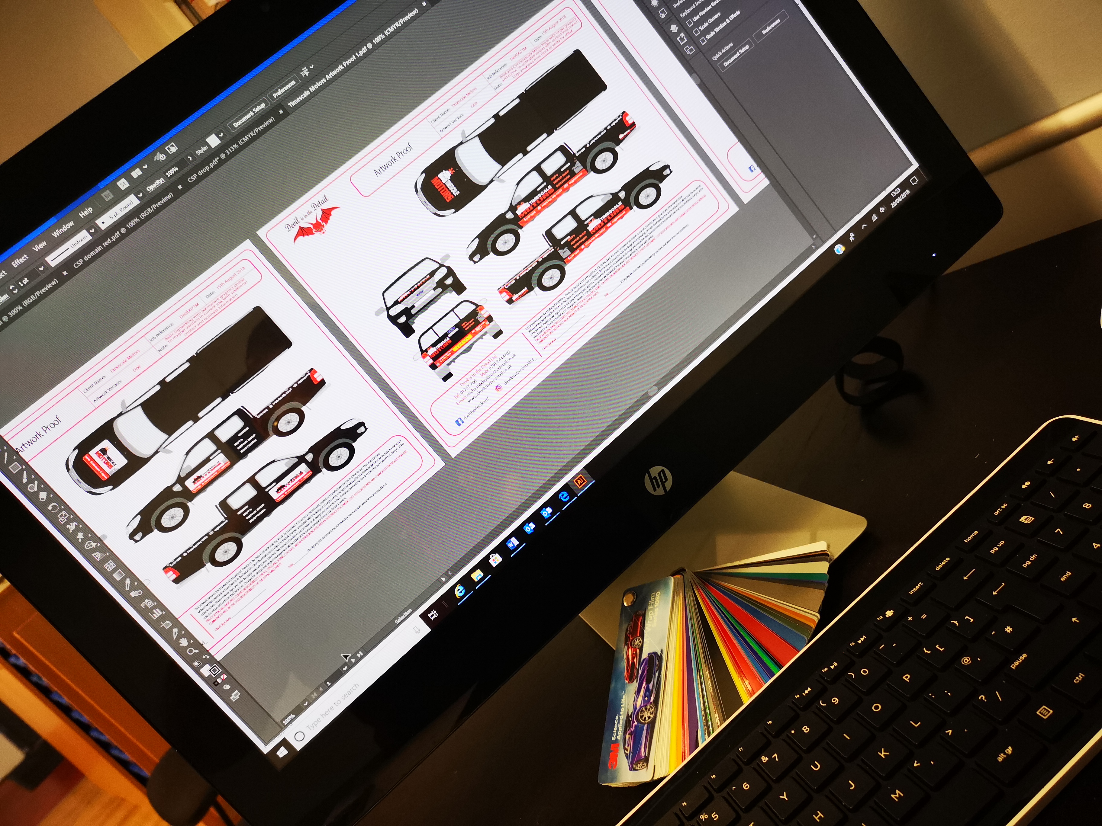Die Gestaltung von Fahrzeugfolien und -grafiken ist unterschiedlich komplex. Ein Transporter oder Lkw bietet eine große Leinwandfläche. Das für die Gestaltung erforderliche Know-how hängt davon ab, wie viel Fläche Sie abdecken müssen und wie kompliziert das Design sein soll. In jedem Fall empfehlen wir jedoch, dass ein erfahrener Grafikdesigner Ihre Grafiken erstellt.