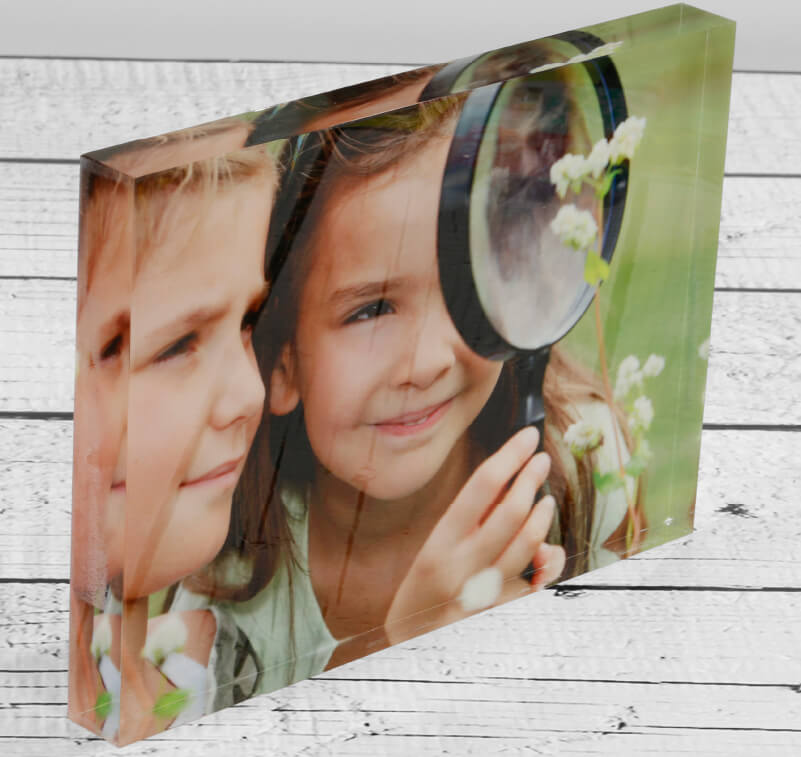 Das Bedrucken von Acrylglasplatten oder -blöcken funktioniert ähnlich wie das Bedrucken jeder anderen flachen Oberfläche – legen Sie das Objekt einfach auf das Druckbett, richten Sie Ihre Druckvorlage im RIP ein und beginnen Sie mit dem Druck. Die Seiten der Acrylblöcke können abgeklebt werden, um ein seitliches Absetzen der Tinte zu vermeiden.