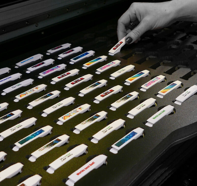 Dank der Einfachheit und Schnelligkeit der UV-Drucktechnologie können Sie mit größerer Flexibilität und geringeren Gesamtkosten mehr produzieren als mit herkömmlichen Sieb- oder Tampondruckverfahren.