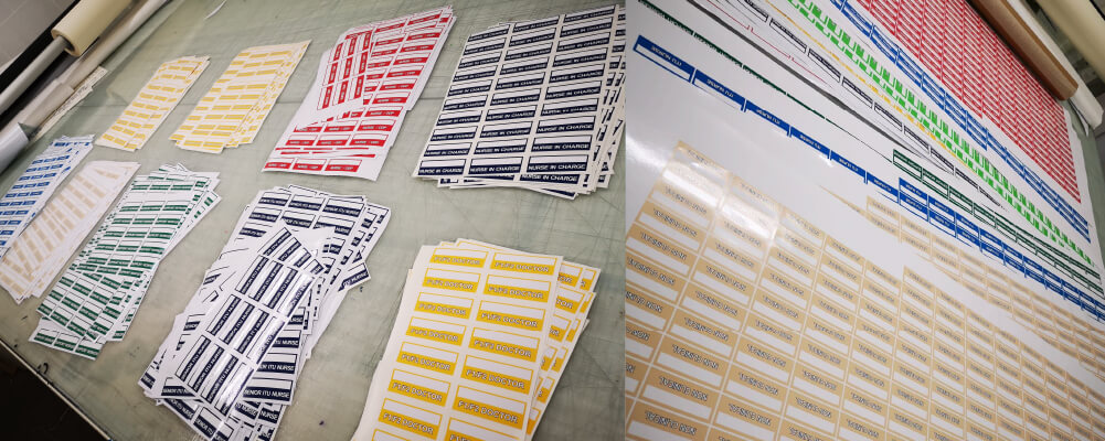 He says: "For one team of 20 nurses, ten doctors and consultants, and ten support staff, changing scrubs three to four times a day: we worked out 3,500 name stickers would last just 13.5 days. We initially printed 5,000 to be safe."