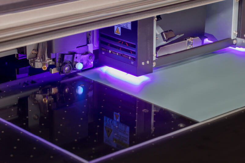 Also known as UV LED printing, this is a print technology whereby a special UV ink is applied to the substrate, then it is instantly cured with ultraviolet (UV) light.