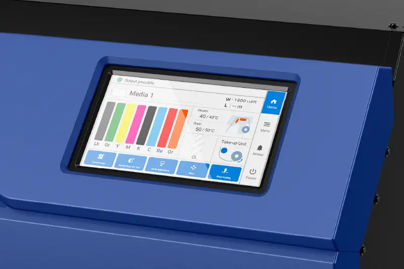 Accurate media setup is designed to support consistent, high-quality output with minimal adjustment. Stored media presets can be saved and recalled at the touch of a button, helping operators achieve repeatable results quickly across different materials and job types.