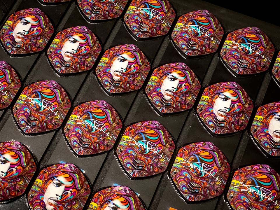 - The company is now able to handle larger volume orders. For the V-MODA x Jimi Hendrix collection, over 1,200 shields were printed.