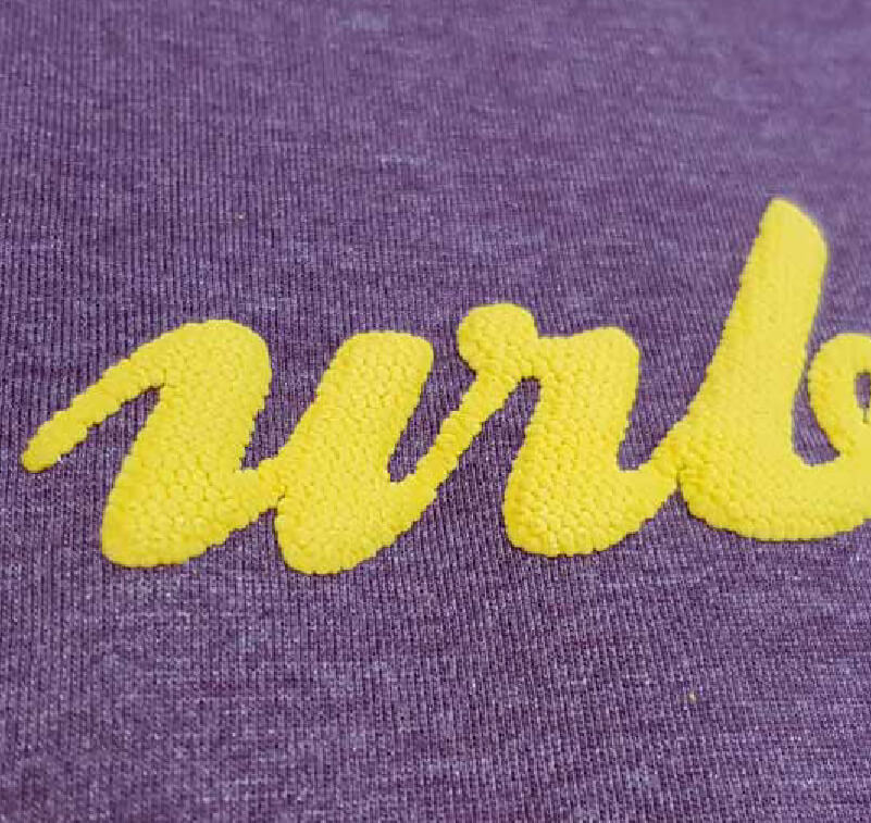Close-up of expanding vinyl cut and applied to a sweatshirt