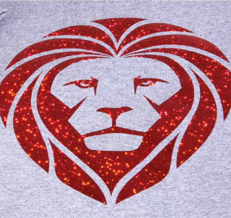 Glitter heat-transfer vinyl cut and applied to a t-shirt
