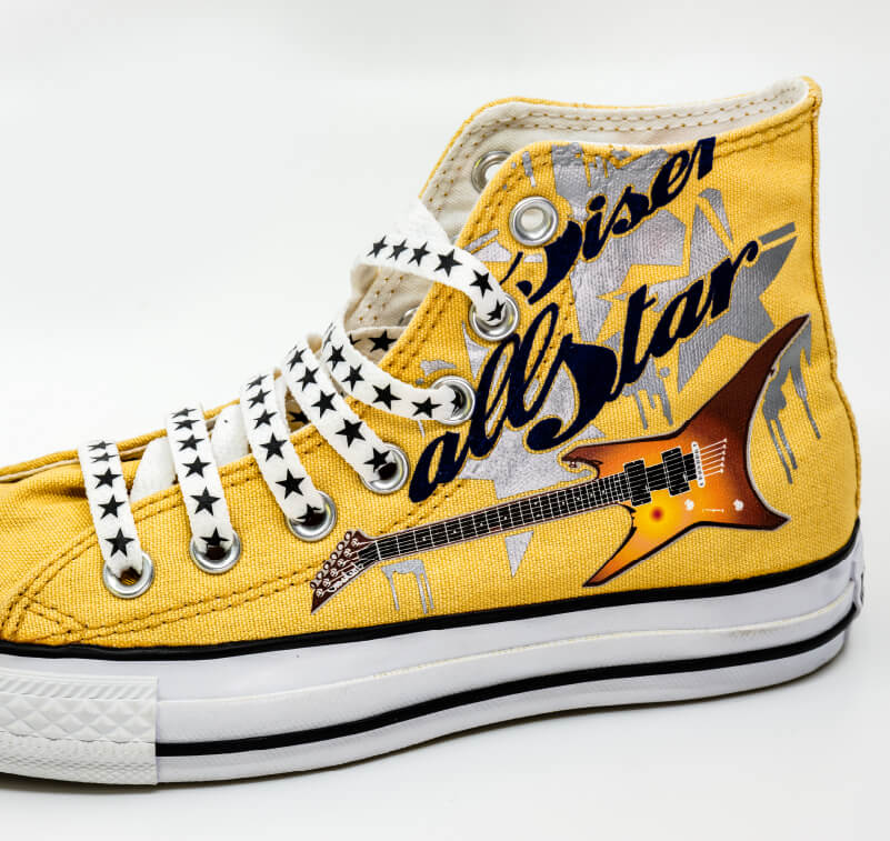 A shoe with heat-applied printed graphics