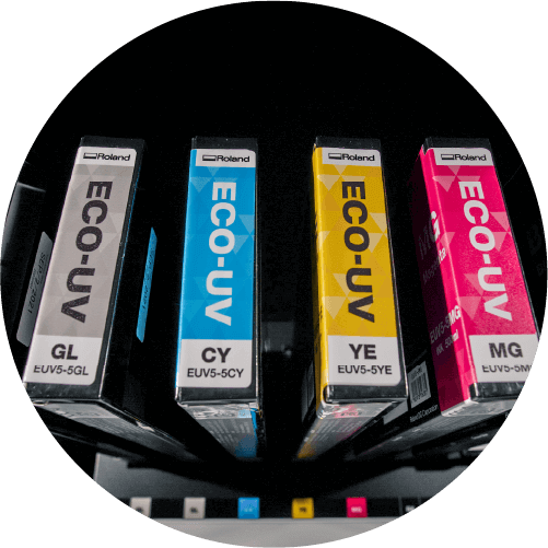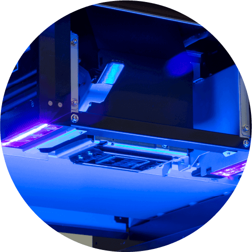 La tinta se cura instantáneamente durante la impresión, lo que significa que puedes producir más, más rápido, sin tiempos de secado y garantizando un acabado duradero y de alta calidad.