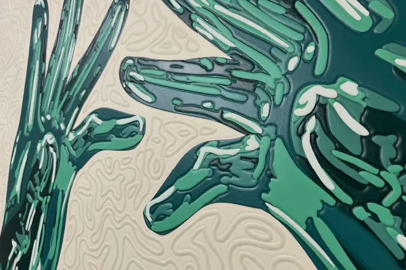 DIMENSE apporte de la texture et de la profondeur directement à vos impressions. Grâce à son encre structurelle unique, utilisée en complément du CMJN standard, la DA-640 vous permet de créer des effets de gaufrage détaillés exactement là où vous le souhaitez. Créez des motifs en relief complexes jusqu’à 2 mm d’épaisseur qui complètent ou contrastent avec vos illustrations imprimées.