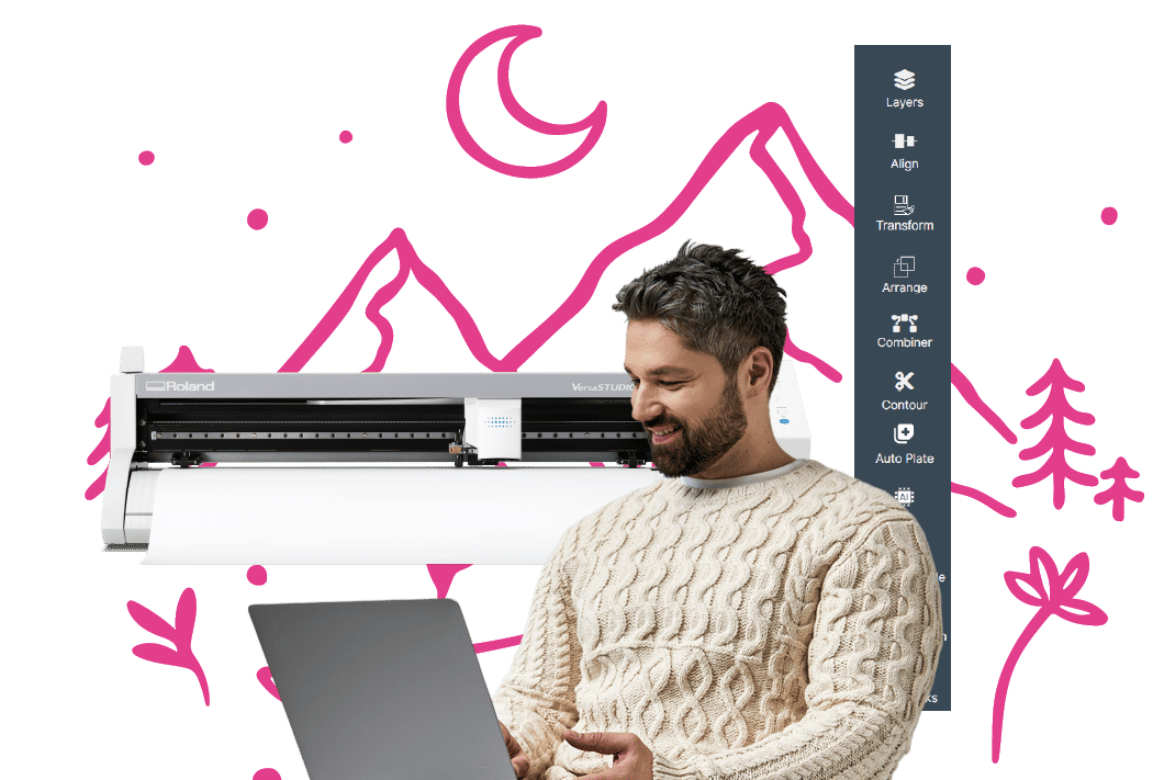 Prenez le contrôle de la conception de vos fichiers avec Roland DG Connect Designer : Visual Communication Module. Créez et perfectionnez des images prêtes à imprimer pour la production quotidienne. Améliorez l’illustration, supprimez l’arrière-plan et vectorisez l’image. Pour accélérer la préparation des fichiers, maintenir une qualité constante et lancer la production en toute confiance, où que vous soyez.