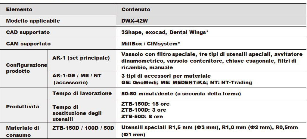 Il sistema di fresatura abutment AK-1 è un kit addizionale integrabile alla fresatrice DWX-42W che consente la lavorazione personalizzata di abutment in titanio di rinomati produttori quali: GeoMedi, MEDENTiKA e NT-Trading.Caratteristiche del sistema di fresatura abutment AK-1
