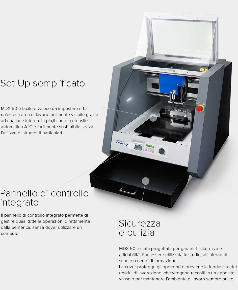 MDX-50 utilizza una serie di accorgimenti tecnici che ti permettono di lasciare la periferica senza la presenza di un operatore dedicato, una volta impostato correttamente il lavoro: