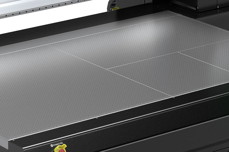 - Inchiostri UV ad alta densità e ad alta adesione per la stampa a colori su una vasta gamma di supporti e articoli, con opzione di primer a bordo per una preparazione efficiente e accurata dei supporti