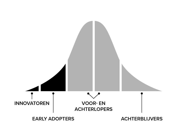 De klantencurve waarover Godin het heeft is gebaseerd op Everett Roger's innovatietheorie en beschrijft de 5 klantensegmenten die nieuwe, innovatieve technologieën doorgaans moeten doorlopen: innovatoren, early adopters, de voor- en achterlopers en de achterblijvers (ook wel bekend als de mensen die pas overwegen om een oude iPhone SE te kopen als de overgrote meerderheid al 10 maanden gebruik maakt van de iPhone 11).