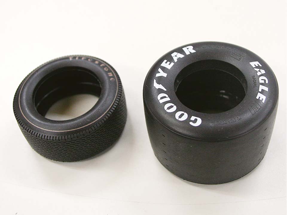 - W przypadku naklejek szczególnie trudno było przenieść naklejki na zaokrąglone części, takie jak opony, a ryzyko ich oderwania się było duże.