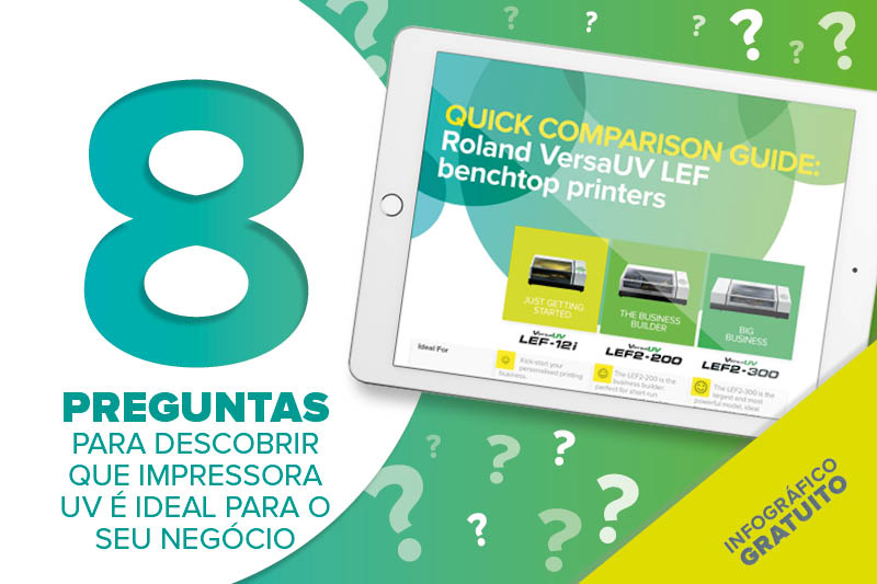 - INFOGRÁFICO DE COMPARAÇÃO LEF GRATUITO - Descarregue o nosso guia de referência rápida VersaUV LEF gratuito para que possa facilmente comparar as nossas três impressoras de bancada UV.