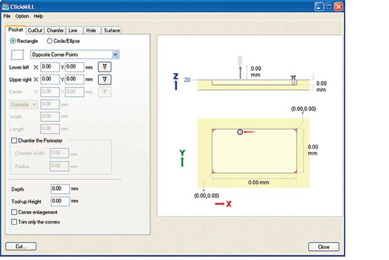 - O software ClickMill permite controlar diretamente a MDX-50 para a fresagem de superfícies, perfuração de orifícios ou outras operações básicas.