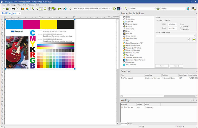 Kullanıcı arayüzü de sezgiseldir, bu da iş akışını akıcı hale getirir. Benzer şekilde sofistike Ergosoft Roland DG Edition 3 RIP, bir çok Roland yazıcı için, tüm renk biçimleri ve bu yazıcılarda sıklıkla kullanılan malzemeler için baskı modlarıyla beraber mükemmel entegrasyon sunması için tasarlanmıştır.