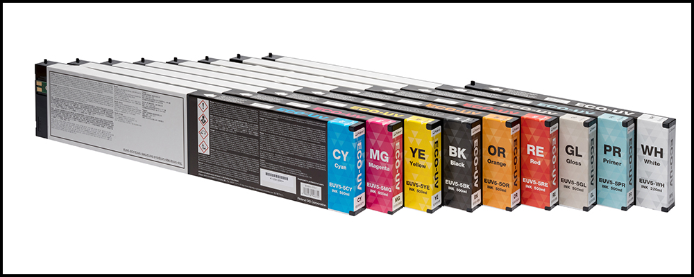 Bütün baskı kabiliyetleri için uygun olan GREENGUARD GOLD onaylı EUV5 mürekkebi, tüm hızlarda çarpıcı baskı kaliteleri sunmakta ve neredeyse sınırsız malzeme ve substrat çeşitleri üzerine kolaylıkla yapışmaktadır.